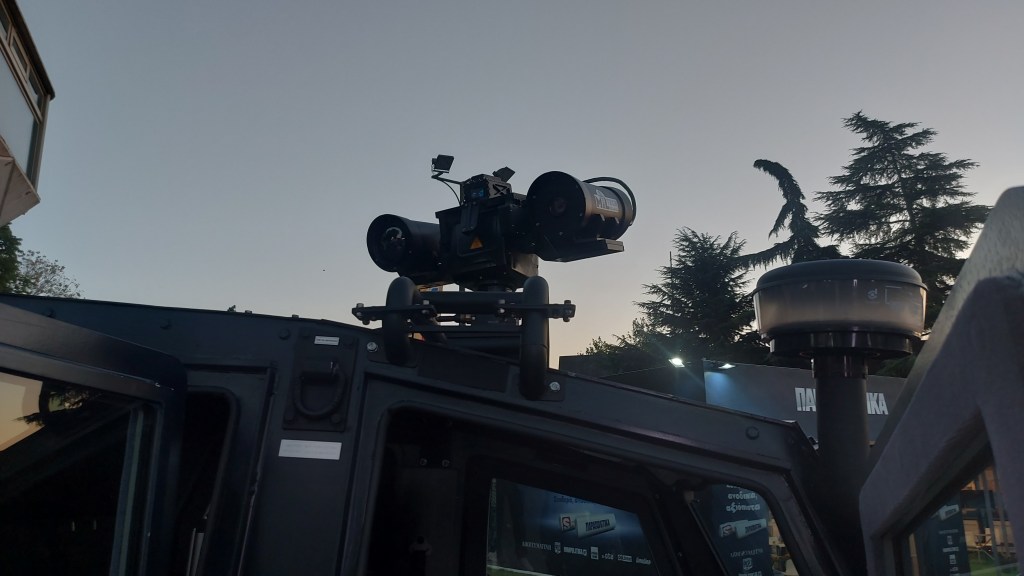 Φωτογραφίες: SHLADOT “DAVID” – «Θωρακισμένο όχημα βαρέως τύπου τελευταίας τεχνολογίας. Εξοπλισμένο με μη ψυχόμενο σύστημα θερμικής απεικόνισης μεσαίων αποστάσεων και με τη φορητή πλατφόρμα “NESTOR”. Δυνατότητα μεταφοράς 8 ατόμων.»