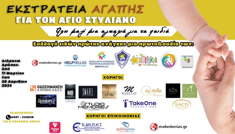 «Εκστρατεία Αγάπης» για το Βρεφοκομείο Άγιος Στυλιανός Θεσσαλονίκης.