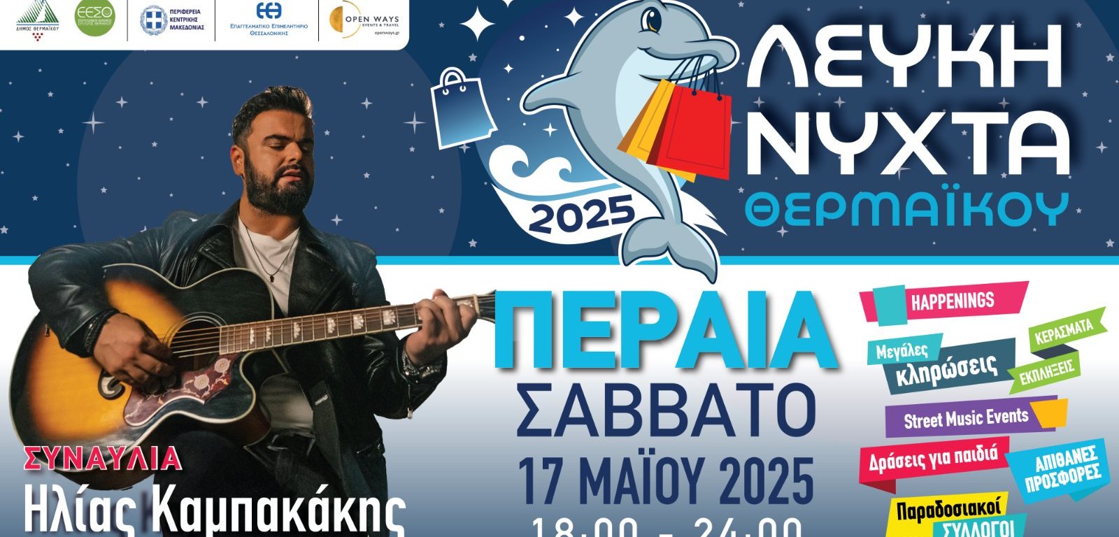 Το Σάββατο 17 Μαΐου 2025, η καρδιά του Δήμου Θερμαϊκού χτυπά δυνατά στην Περαία, όπου η 4η Λευκή Νύχτα υπόσχεται μια αξέχαστη εμπειρία διασκέδασης για μικρούς και μεγάλους!