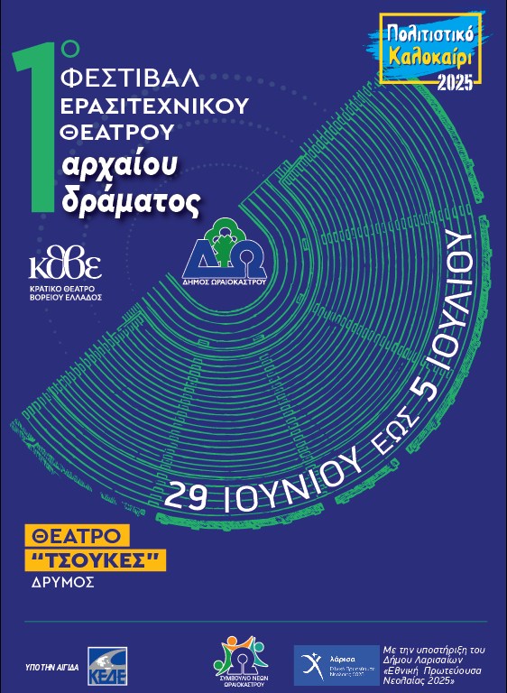 Το 1ο Πανελλήνιο Φεστιβάλ Ερασιτεχνικού Θεάτρου Αρχαίου Δράματος θα πραγματοποιηθεί από 29 Ιουνίου ως 5 Ιουλίου 2025 στο Ανοικτό Θέατρο «Τσούκες» στο Δρυμό του Δήμου Ωραιοκάστρου.
