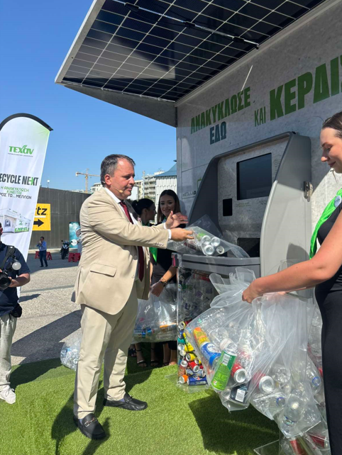 Στο πλαίσιο επίσημης παρουσίασης σε εκπροσώπους των ΜΜΕ που πραγματοποιήθηκε την Κυριακή 7 Σεπτεμβρίου στην 89η ΔΕΘ, ο Πρόεδρος της ΤΕΧΑΝ, κ. Απόστολος Μούργος, δήλωσε σχετικά: «Το πιο ουσιαστικό μήνυμα είναι ότι η ανακύκλωση περνά σε μία νέα εποχή και η Ελλάδα μπορεί να δίνει το παράδειγμα. Ως πρωτοπόροι στην κυκλική οικονομία και την περιβαλλοντική καινοτομία, έχουμε δεσμευτεί να προσφέρουμε λύσεις που κάνουν τη διαφορά. Το Νέο Φωτοβολταϊκό Κινητό Πολυκέντρο Ανακύκλωσης είναι το επόμενο βήμα. Το μέλλον της ανακύκλωσης και της βιώσιμης ανάπτυξης είναι εδώ» & πρόσθεσε: «Ερχόμαστε να συνεισφέρουμε στην εθνική προσπάθεια επίτευξης των ευρωπαϊκών στόχων. Το 2025, ο στόχος από την Ε.Ε. για κάθε κράτος-μέλος ανέρχεται σε ποσοστό 50% ανακύκλωσης πλαστικών, μεταλλικών και γυάλινων υλικών. Η Ελλάδα βρίσκεται σήμερα στο 19%, οπότε είναι αυτονόητο ότι πρέπει να προσπαθήσουμε όλοι. Μαζί με τον Γιάννη Αντετοκούνμπο, Πρεσβευτή Ανακύκλωσης της ΤΕΧΑΝ στην Ελλάδα, καθώς και όλους εσάς, θέλουμε και μπορούμε να το κάνουμε πραγματικότητα. Γιατί, όπως μας λέει και ο Γιάννης: Στην Ανακύκλωση είμαστε όλοι μια ομάδα. Είμαστε ΤΕΧΑΝ!».