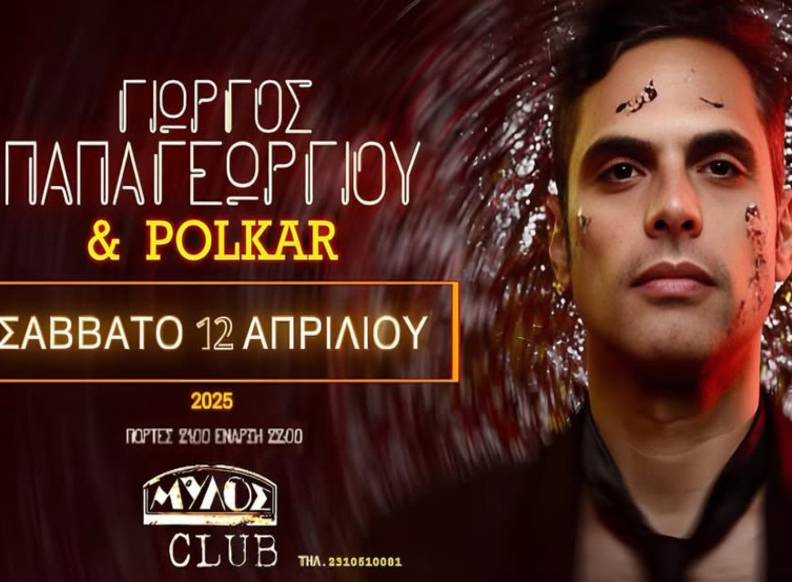 Ο Γιώργος Παπαγεωργίου και οι Polkar θα εμφανιστούν το Σάββατο 12 Απριλίου 2025 στο Mylos Club Thessaloniki, προσφέροντας μια ιδιαίτερη συναυλία.
